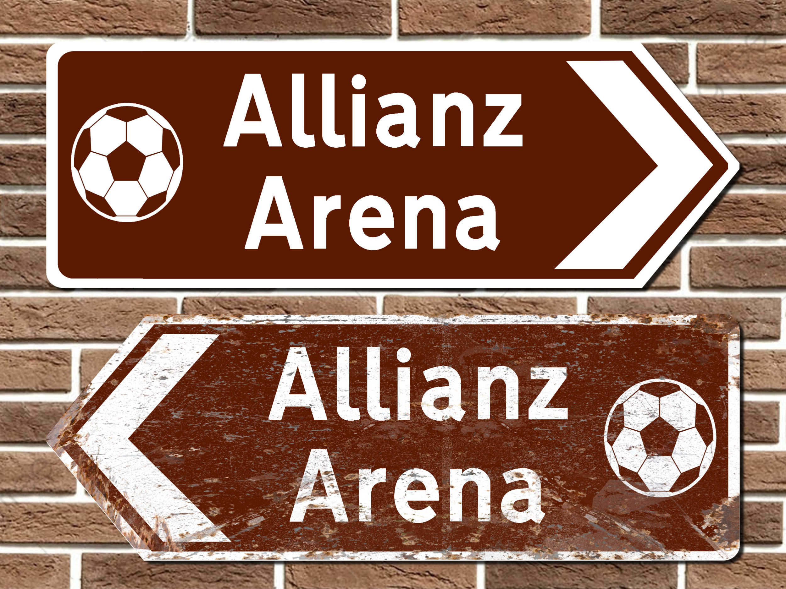 Allianz Arena metal road sign in the style of a traditional British road sign