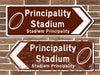 Principality Stadium Rugby Ground metal road sign in the style of a traditional British road sign